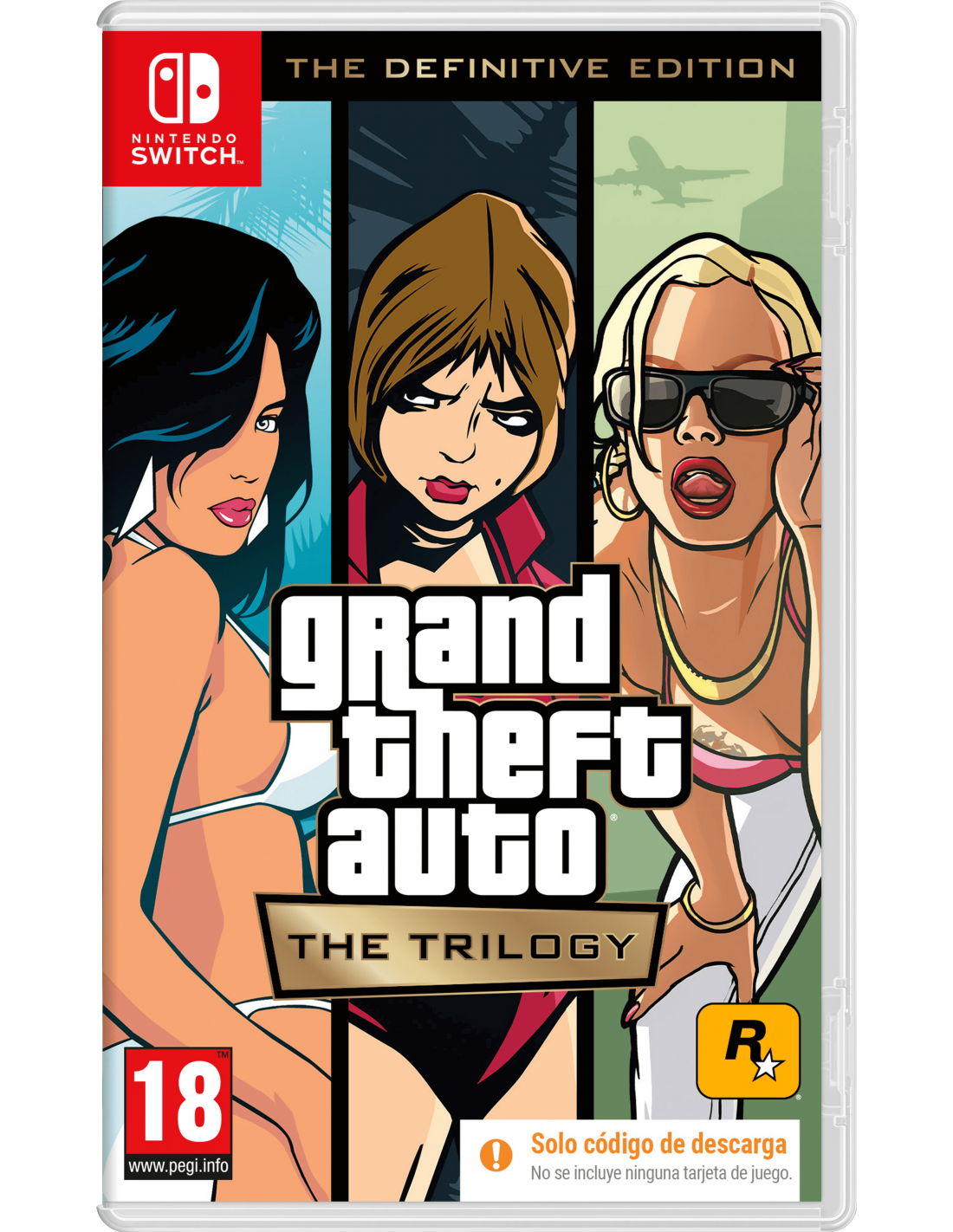 Grand Theft Auto: The Trilogy – The Definitive Edition para Nintendo Switch reúne tres de los títulos más icónicos de la saga —GTA III, GTA: Vice City y GTA: San Andreas— completamente remasterizados con mejoras visuales, controles actualizados y optimización para jugar en cualquier lugar.