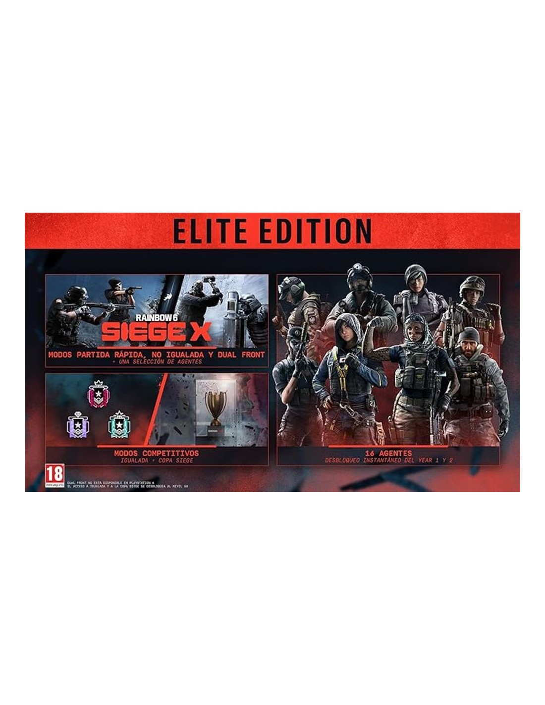- Elite Edition incluye contenido adicional premium y acceso extendido a operadores