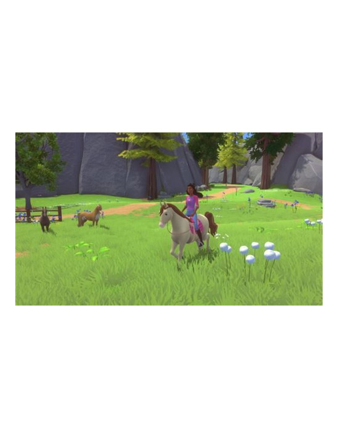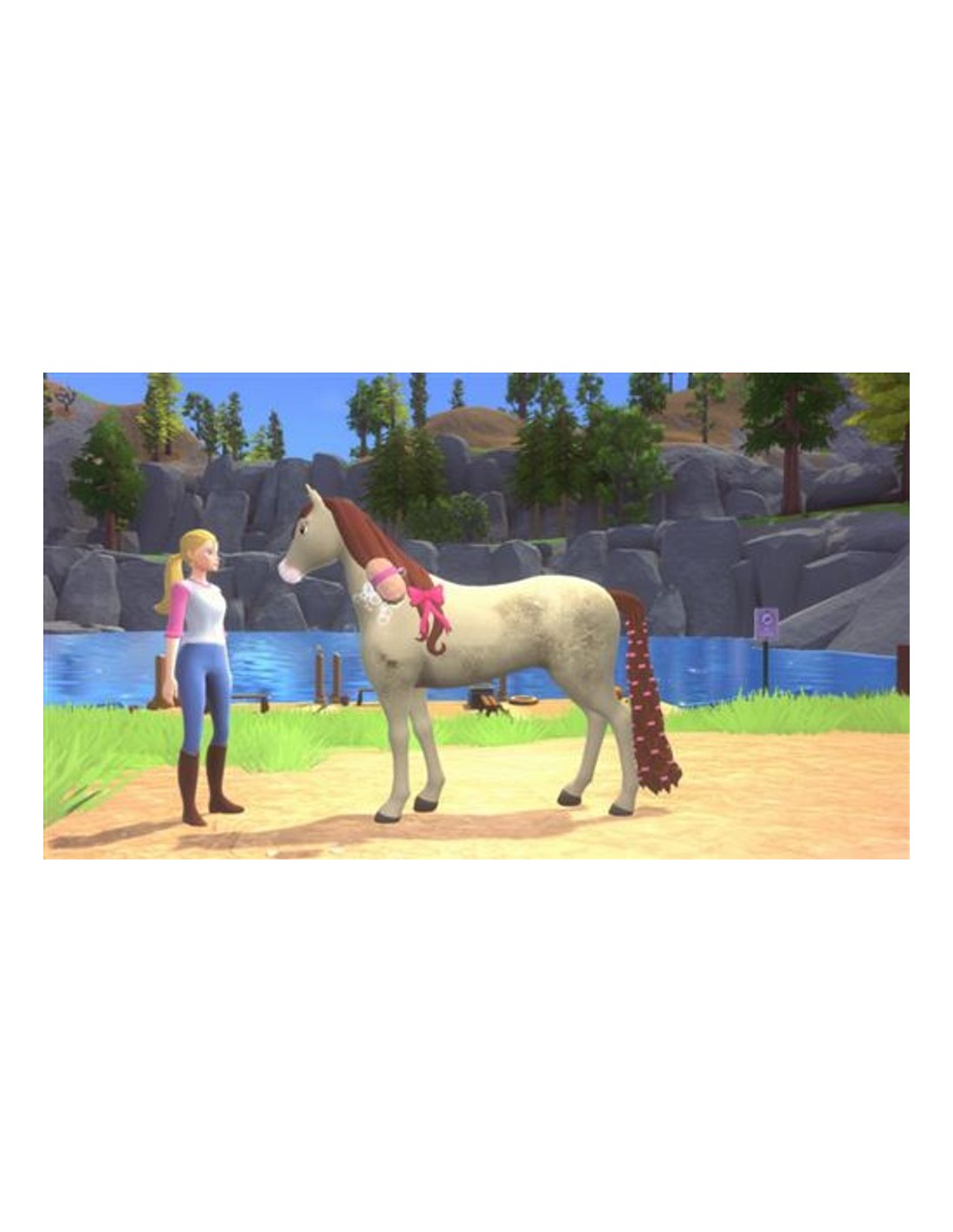 Cuida a tu caballo: cepilla y pon accesorios a Lucky para afianzar una bonita amistad con ella. Juega como Barbie: toma las riendas como Barbie "Brooklyn" Roberts o Barbie "Malibu" Roberts. Explora el mundo abierto: ve al paso, al trote o al galope con Lucky y descubre la belleza del parque. Fórmate como guarda forestal: aprende a cuidar el parque de Canterbury Trails con la ayuda de expertos de la naturaleza. Captura la vida salvaje: usa la cámara para hacer fotos de animales, plantas y otros descubrimientos, y guárdalas en tu diario, ya que te servirán de ayuda en las misiones.