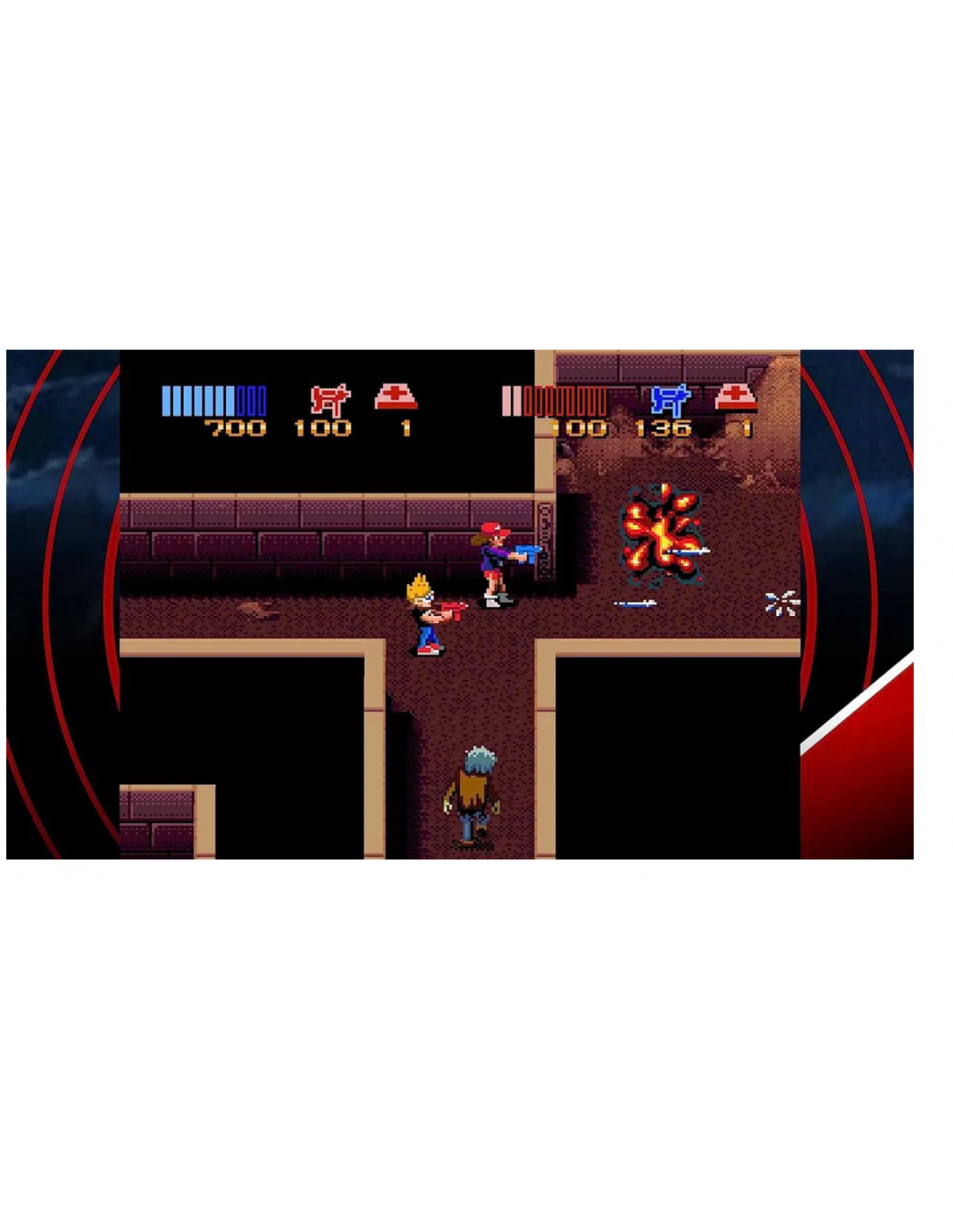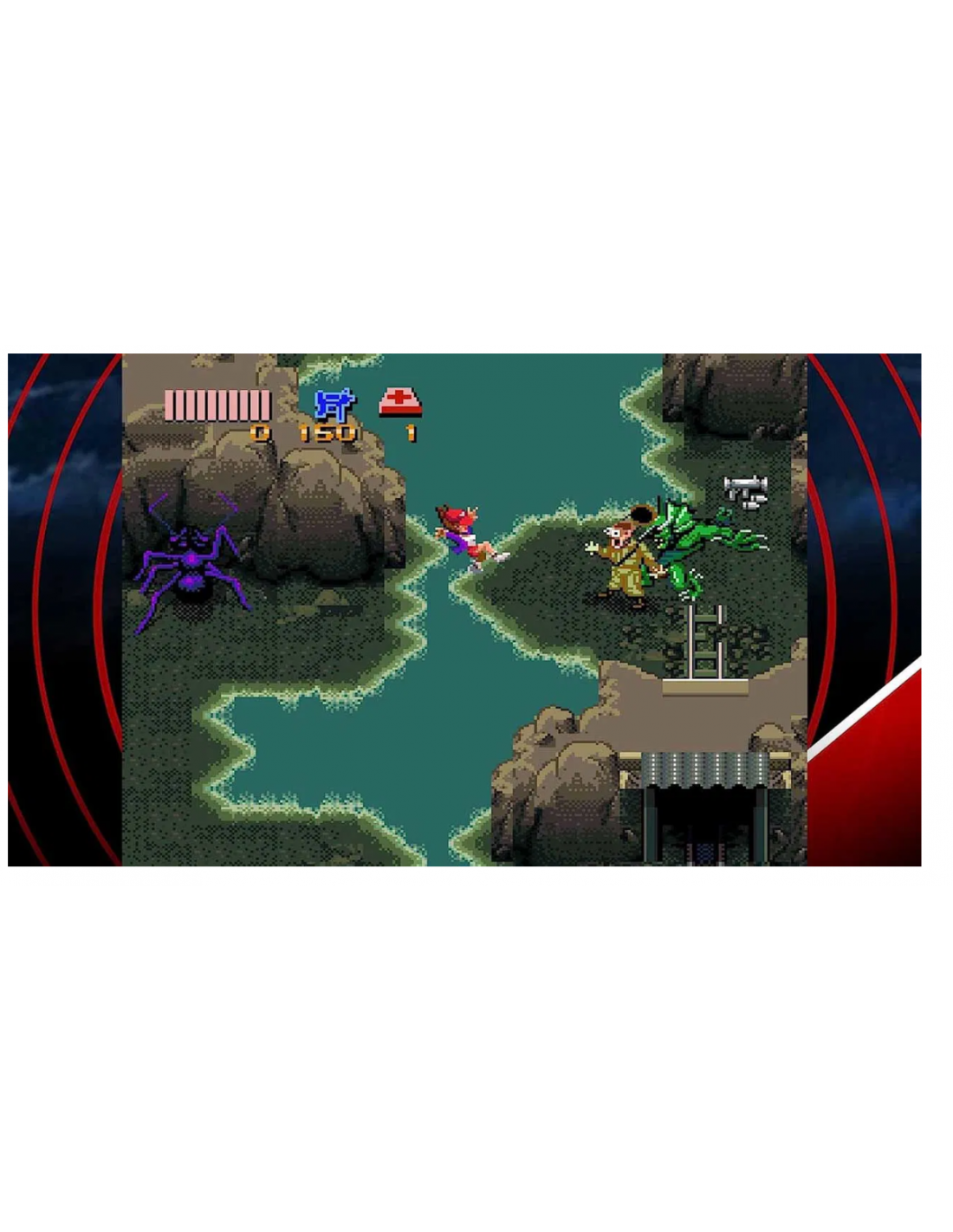 Oye, ¿de dónde viene esa música tan espeluznante? ¡Ay! Es Zombies Ate My Neighbors, donde apareces en todas las películas de terror demenciales que te hacen vomitar gominolas. ¿Qué hacen Zeke y Julie, nuestras dos estrellas adolescentes tan sanas, en un juego de 16 bits como este? ¡Intentando salvar a los simpáticos vecinos, las animadoras y los bebés de un destino peor que el poliéster! ¿Quién podría sumir a este pedazo de barrio residencial en una histeria tan espeluznante? Zombis, implacables maníacos con motosierra, momias, muñecos malvados que no mueren, hombres lagarto, blobs, vampiros, hormigas gigantes, marcianos y mucho más. ¿Sobrevivirán estos chicos locos a la noche?