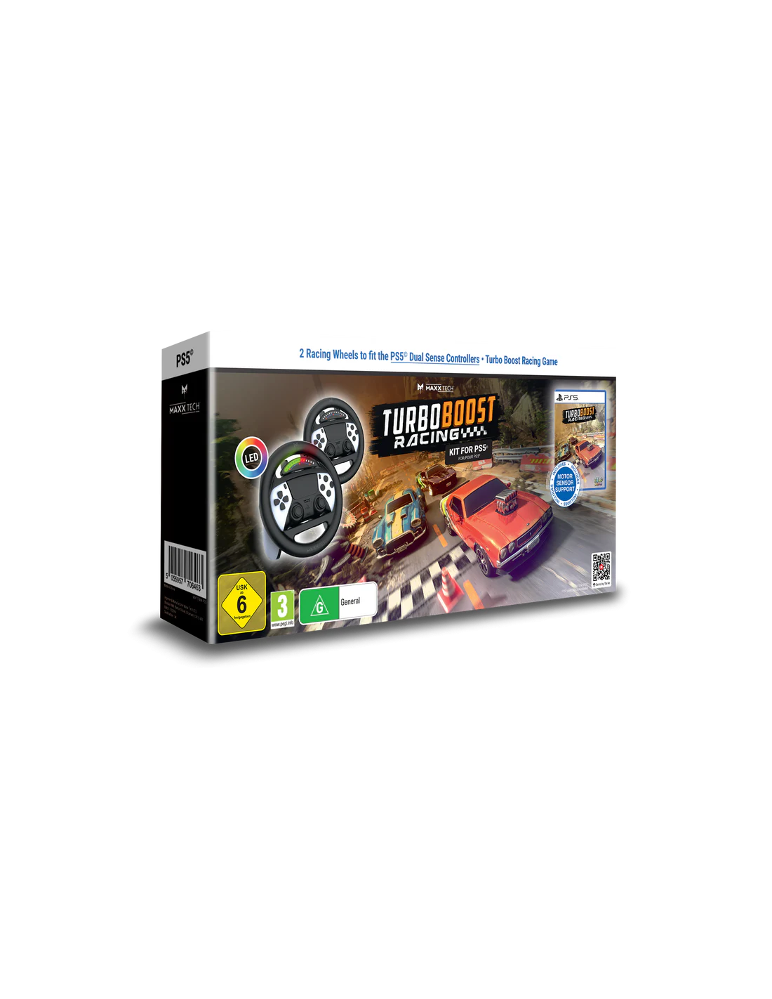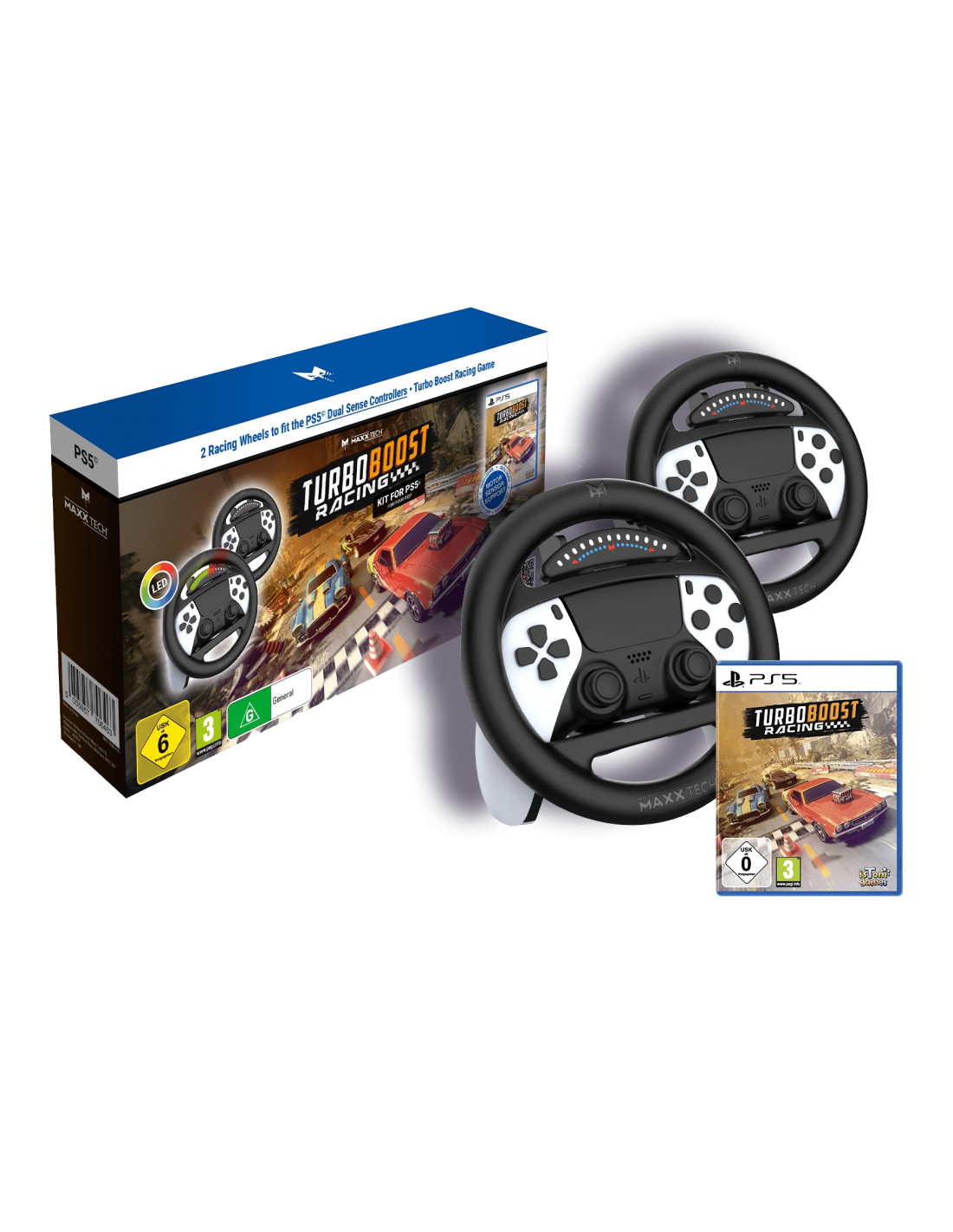 El Maxx Tech Turbo Boost Racing Kit para PlayStation 5 es un paquete diseñado para llevar tus juegos de carreras a un nuevo nivel de inmersión y diversión. Incluye dos volantes LED Turbo Boost y el juego Turbo Boost Racing, ofreciendo una experiencia de juego única y emocionante.