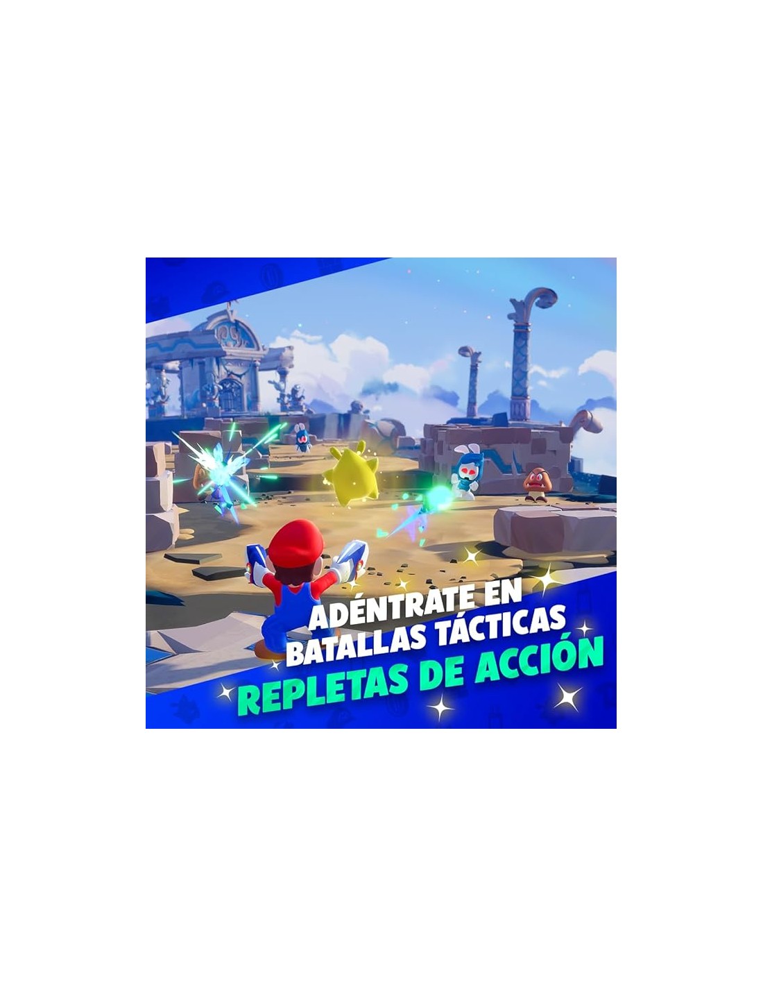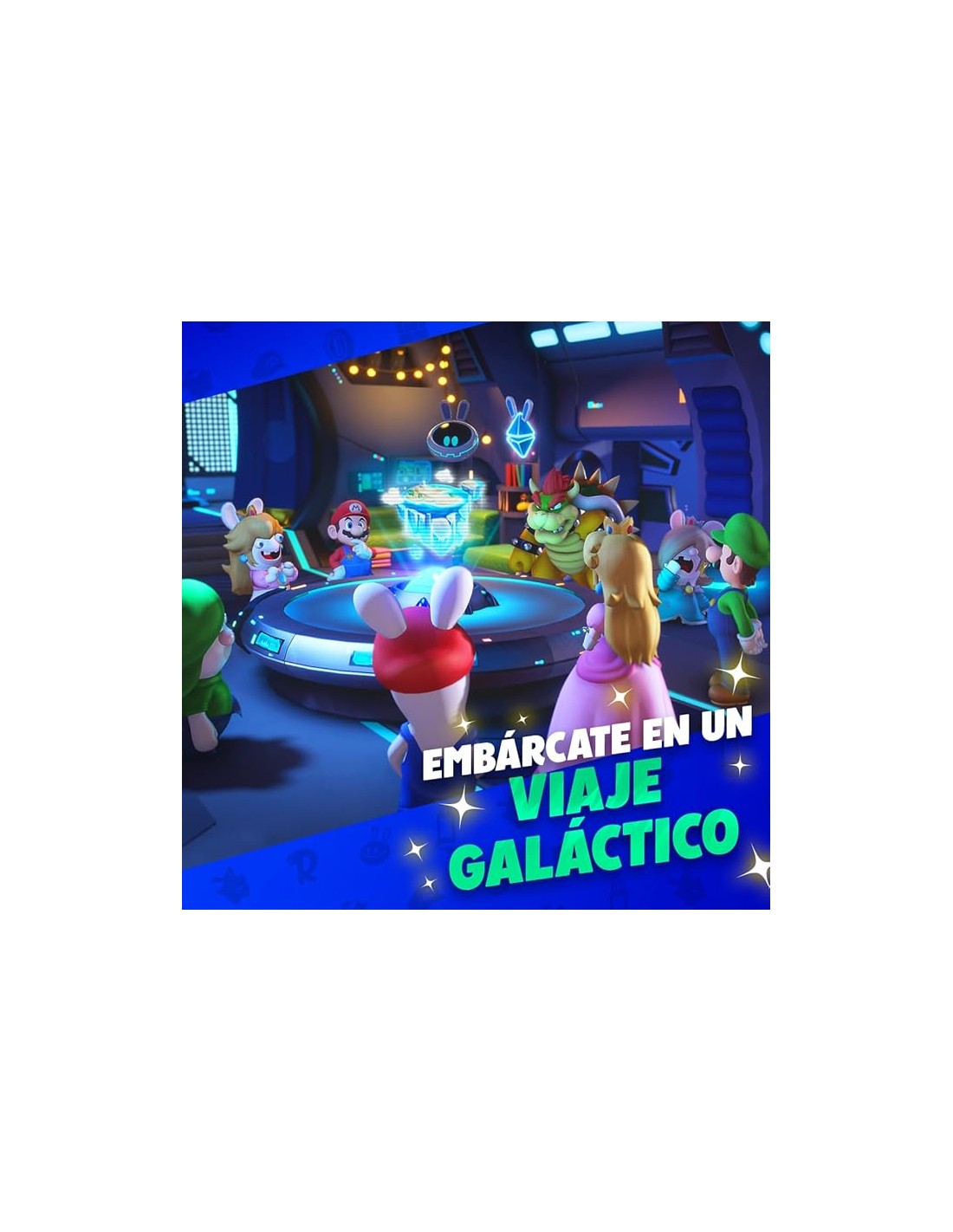 Mario, Luigi, Peach y sus contrapartes Rabbid vuelven a unir fuerzas en una aventura interplanetaria para devolver la paz a la galaxia. Enfréntate a nuevas amenazas cósmicas, descubre planetas llenos de secretos y domina un sistema de combate táctico renovado que combina exploración libre y acción estratégica por turnos.