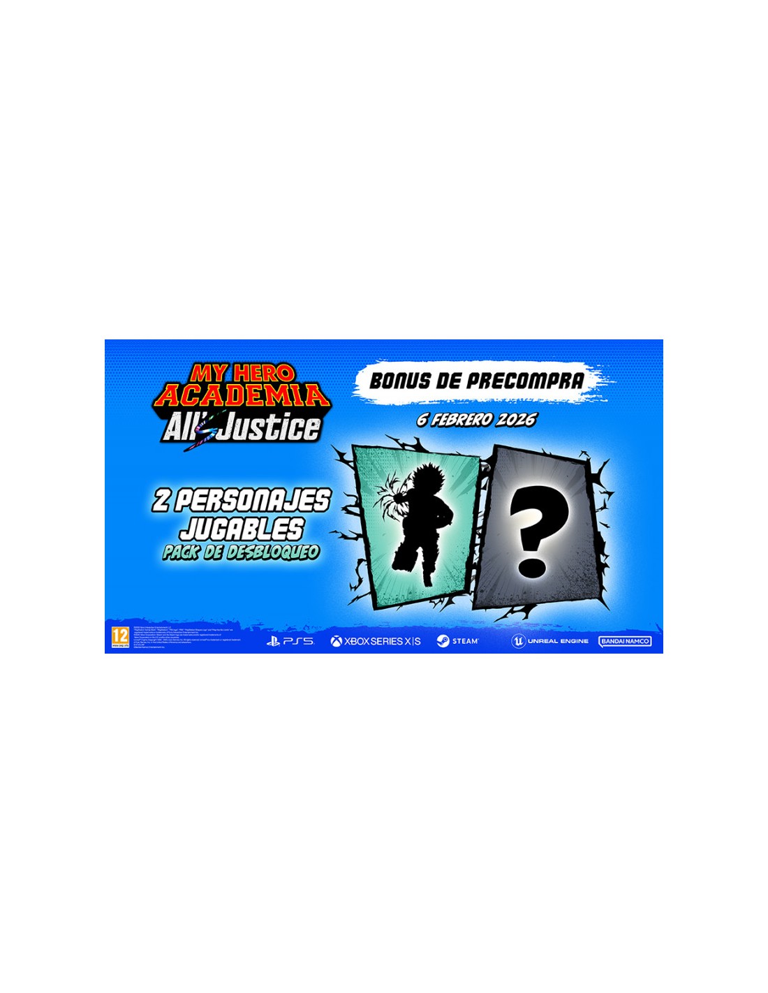 ¡MY HERO ACADEMIA: All's Justice es un juego superpoderoso de lucha en arena 3D en el que aparecerán vuestros personajes favoritos de la franquicia de My Hero Academia en su versión más actual y poderosa y encuadrada en un sistema de combate depurado que muestra sus dones al límite! Además, podrás sumergirte virtualmente y sentirte como un estudiante de la clase de Deku gracias al escenario original y a sus Team-Up Missions.