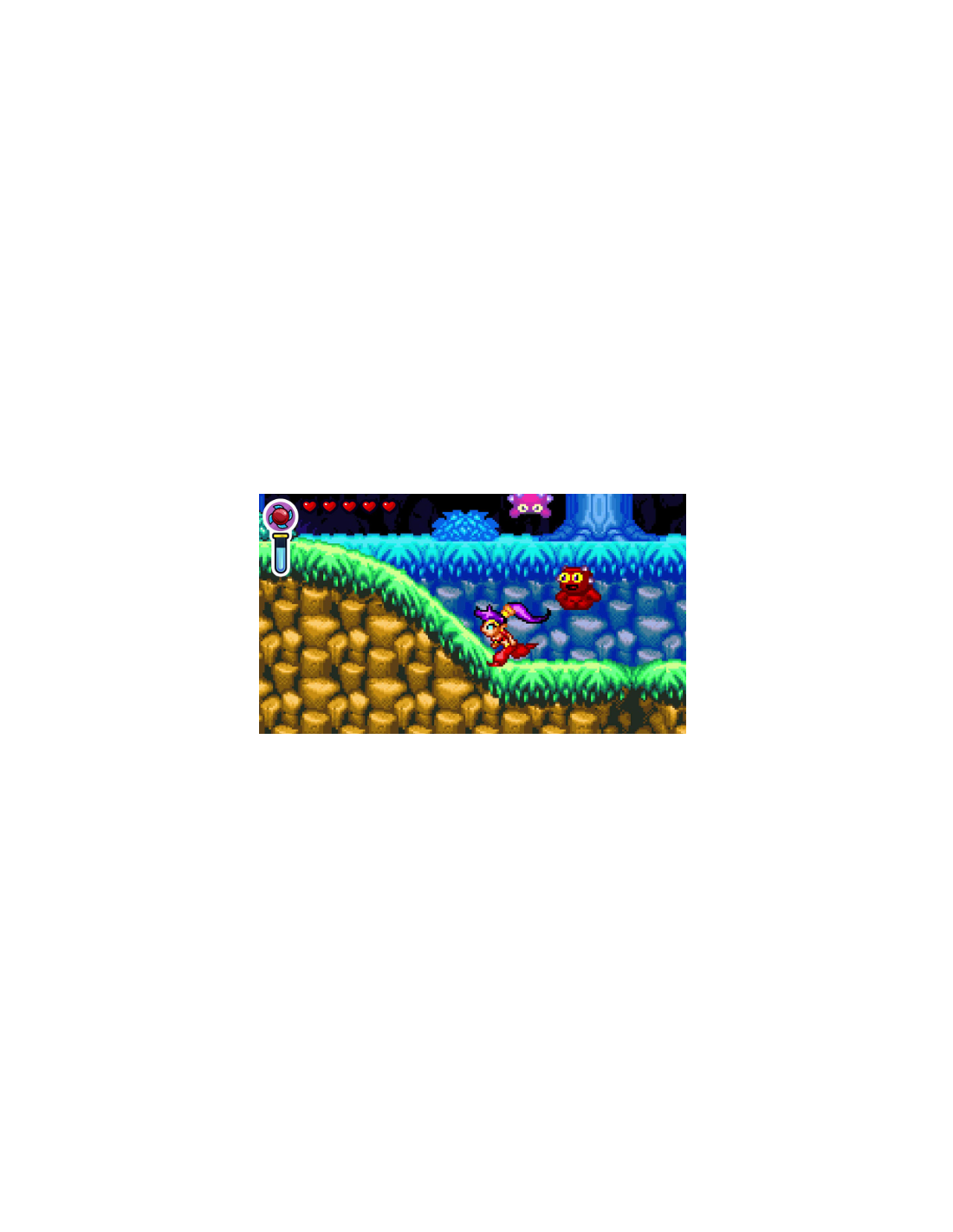 ¡Lucha y explora utilizando la habilidad de Shantae para azotar con el pelo, objetos mágicos y transformaciones de danza del vientre (incluyendo mono, elefante, cangrejo y más)!