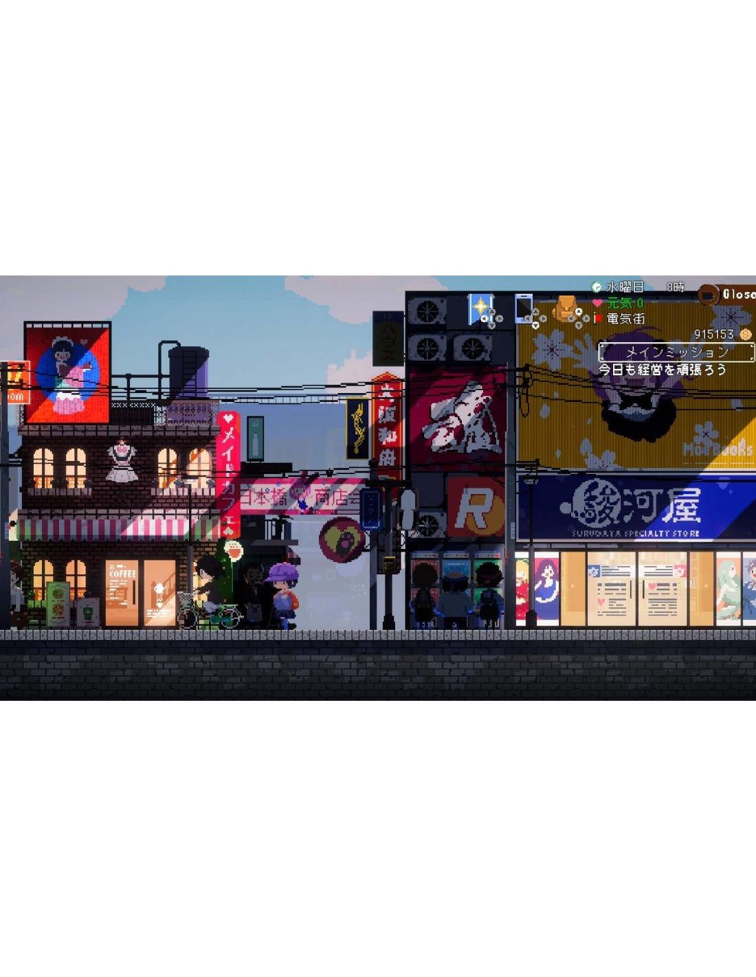 - Apoya a las empleadas de tu Maid Cafe como gerente! - Tu trabajo más importante como gerente es, por supuesto, administrar el café y a las camareras. Primero, tendrás que asignarles tareas. A Shiro le encanta atender a los clientes, y Miyu es una excelente cocinera... ¡Asegúrate de que cada una tenga el trabajo adecuado! Mientras el café esté abierto, puedes ayudar atendiendo a los clientes y animando a las camareras. Y con el dinero que tanto te ha costado ganar, puedes ir de compras, comer fuera o comprar artículos o juguetes de cápsula para tu colección otaku. ¡Haz de Fuwa Fuwa el café más popular de la ciudad para disfrutar al máximo de Nipponbashi!