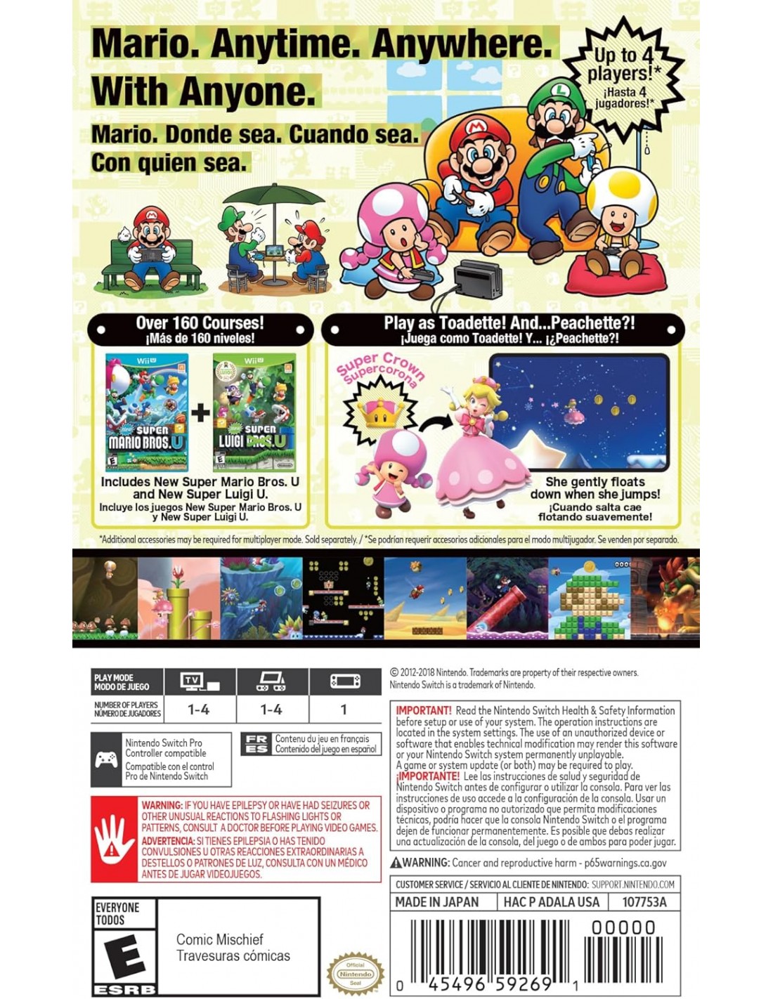 Vive una aventura clásica con un toque moderno en New Super Mario Bros. U Deluxe para Nintendo Switch. Únete a Mario, Luigi, Toad... ¡y ahora también Toadette y Caco Gazapo! Explora más de 160 niveles llenos de acción, plataformas, secretos y enemigos icónicos en este juego perfecto para toda la familia.