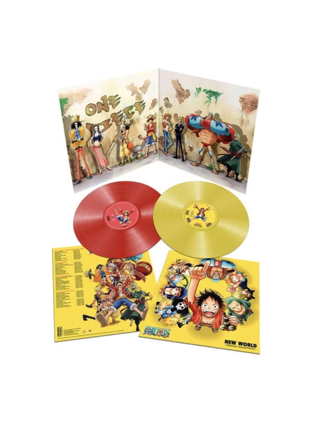 Edición limitada en vinilo de la banda sonora de One Piece: New World en vinilo rojo y amarillo.
